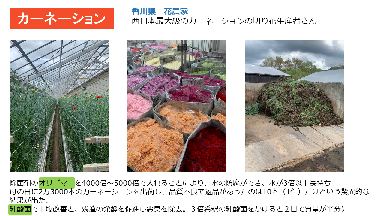 ⑤農薬の代わりに乳酸菌、化学肥料の代わりに安価で良質な有機肥料を使用することで資材にかける費用を削減