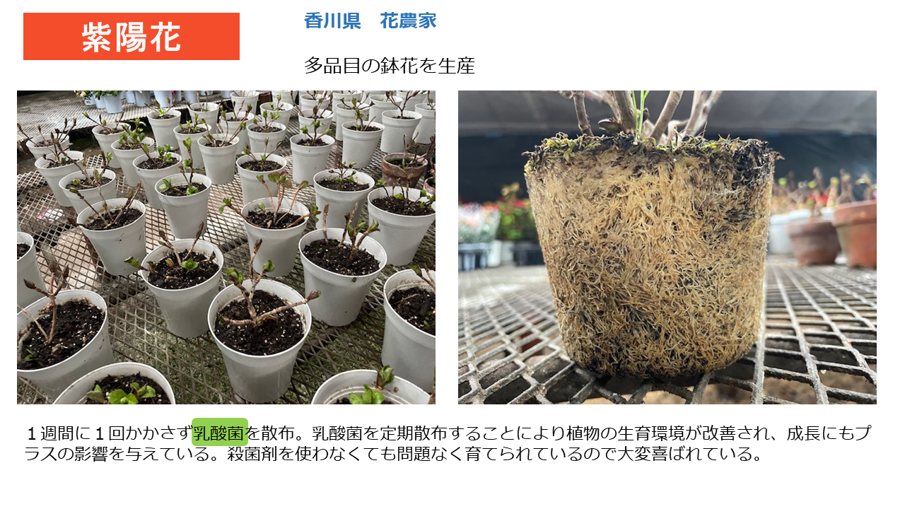 ①自然に優しい乳酸菌で薬剤散布の回数を減らし生産者さんの健康リスクを減らす